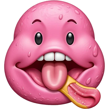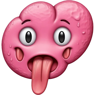 A yellow emoji face with flushed cheeks, eyes squeezed shut, mouth open with tongue hanging out, sweat droplets all over the face, expressing a mix of exhaustion, heat, and overwhelming intensity. Highly expressive, 3D-rendered with vibrant shading and glossy finish. emoji