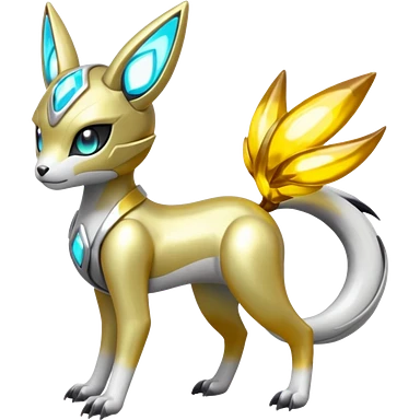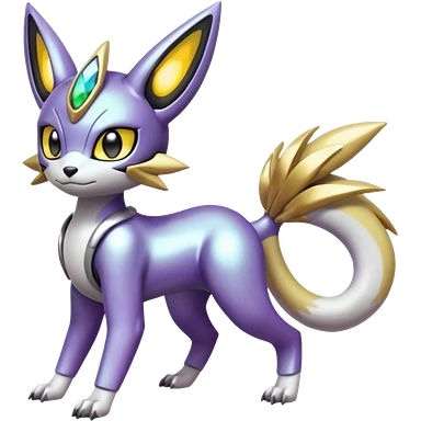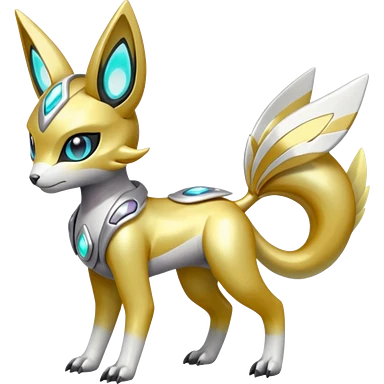 Glowing futuristic cyber-Meloetta-Renamon-Protogen-Palkia-hybrid-fusion-Fakémon-creature, full body emoji