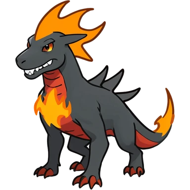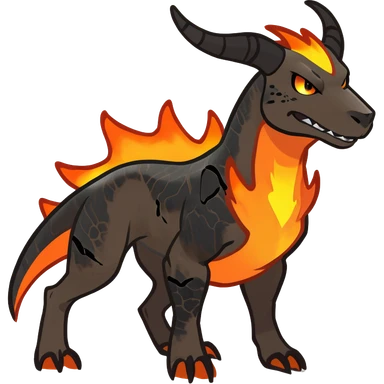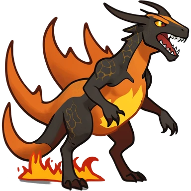 Copper-Bronze Molten-Lava Glow-Cracked Fiery-Runed Draconic Houndoom-Garchomp-hybrid-creature (full body) emoji