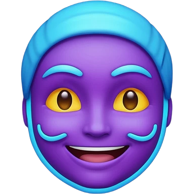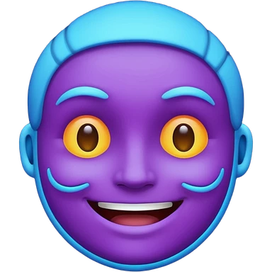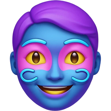 glowing face emoji, smiling, purple and blue neon color, dark background emoji