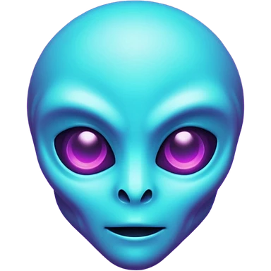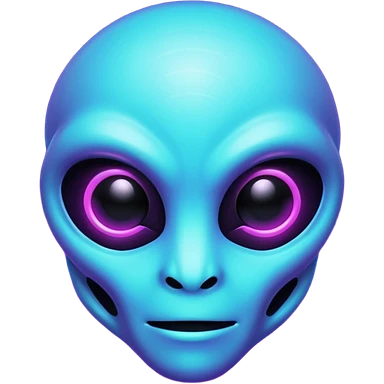 futuristic glowing pixel game alien emoji face, purple and cyan neon light, dark background emoji