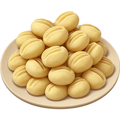 Gnocchi Cinematic Realistic Gnocchi Dish Emoji, depicted as tender potato dumplings garnished with iconic fork marks on top, rendered with soft textures and warm, inviting lighting. emoji