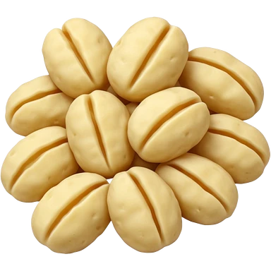 Gnocchi Cinematic Realistic Gnocchi Dish Emoji, depicted as tender oblong potato gnocchi garnished with iconic fork marks on top, rendered with soft textures and warm, inviting lighting. emoji