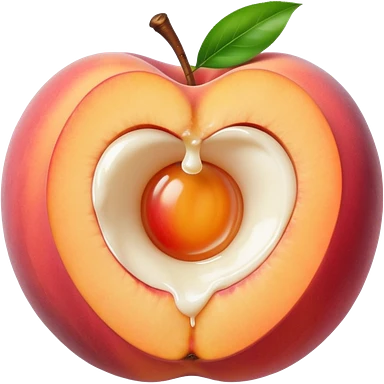 pink hole in the middle of a peach that doesnt go all the way through. milk is leaking out of the hole emoji