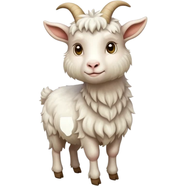 Chibi baby goat with a joyful expression, waving hello with one hoof, simple clean chibi stickers style, designed for a small emote, white background. Make sure that the hoof is not a hand. emoji
