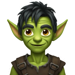 Goblin head, wearing a dark cape, hood, front view, emoji | AI Emoji Generator