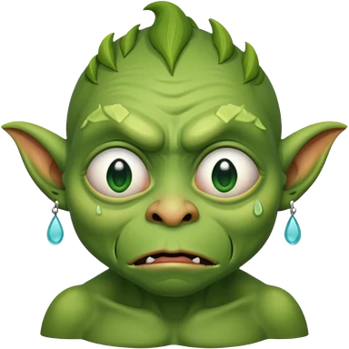 Goblin is crying with very big tears in his eyes emoji | AI Emoji Generator