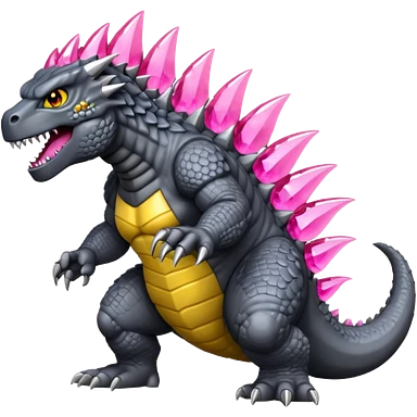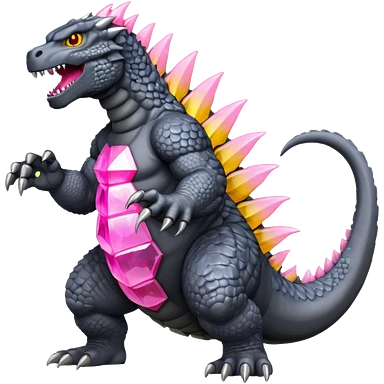 godzilla with pink crystal dorsal plates yellow eyes and grey skin emoji