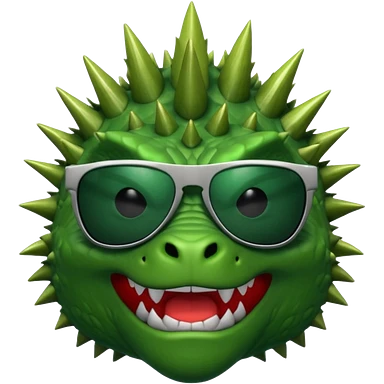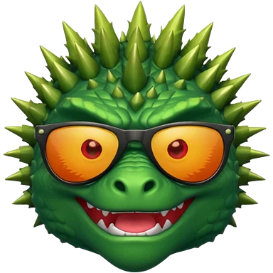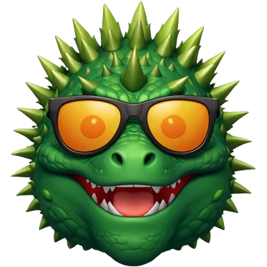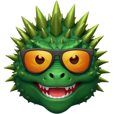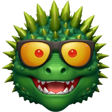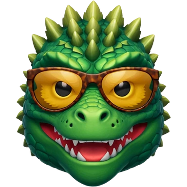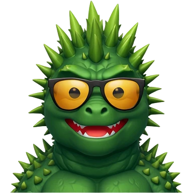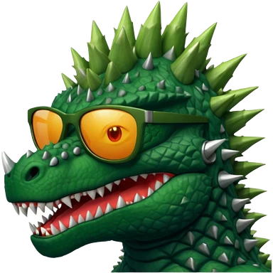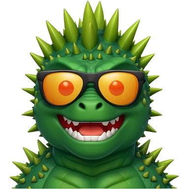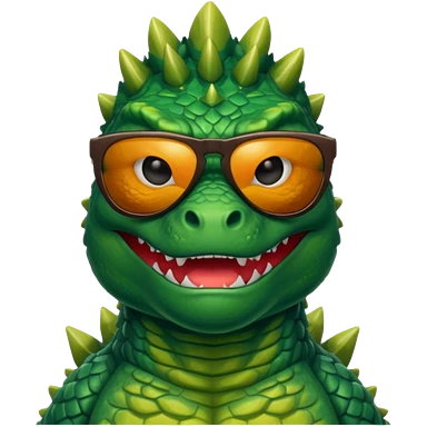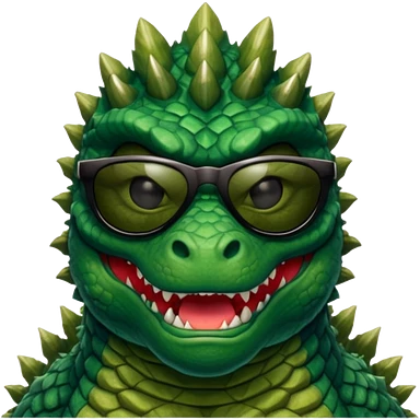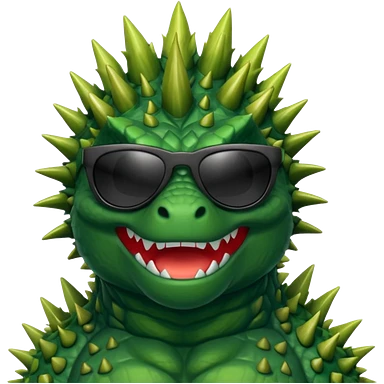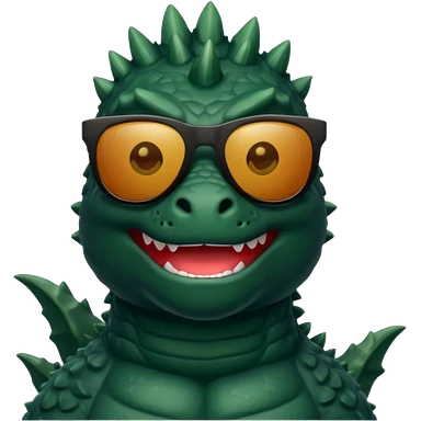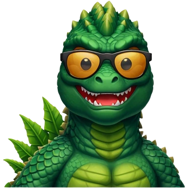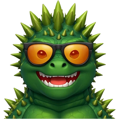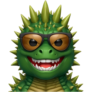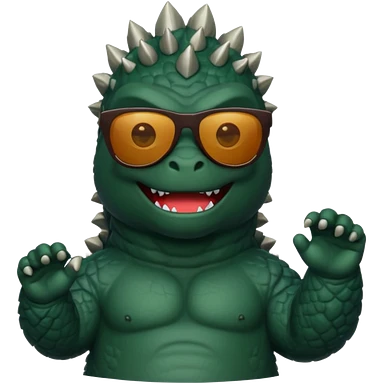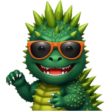 Godzilla with shotgun wearing sun glasses while riding a rocket emoji