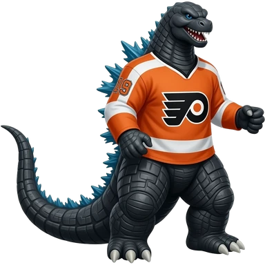 godzilla wearing philadelphia flyers hockey jersey emoji