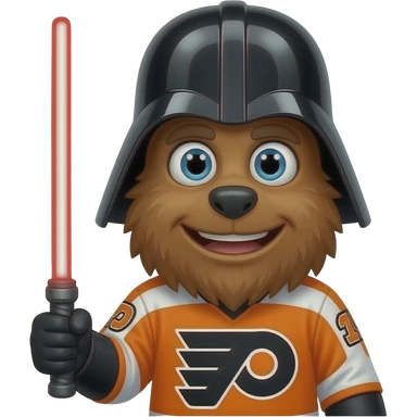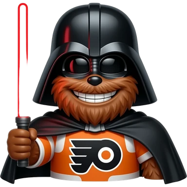 Create a gritty emoji. Philadelphia flyer mascot Gritty’s face. with darth vader lightsaber emoji