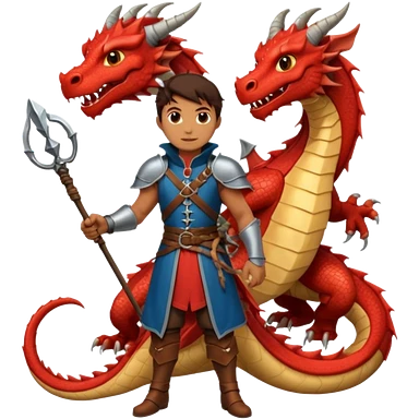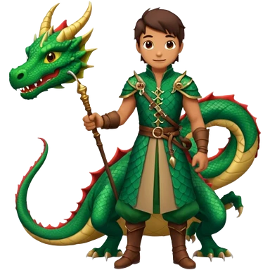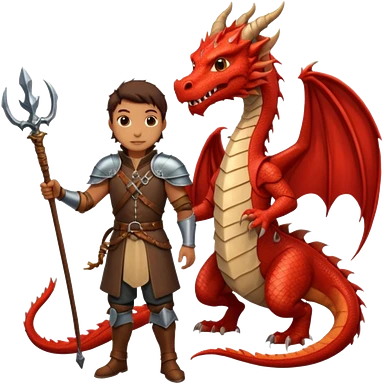 a dragon tamer in medieval time with a dragon next to him emoji