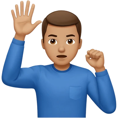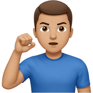 wearing a blue shirt punching the air emoji