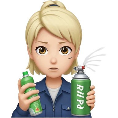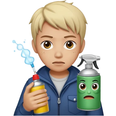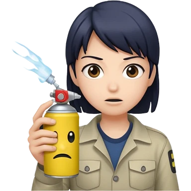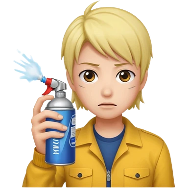 Gojo Satoru using a can of raid bug spray looking disgusted emoji | AI Emoji Generator