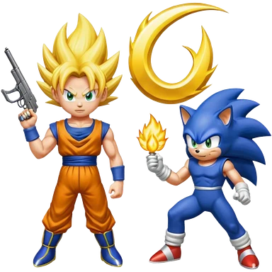 Goku and vegeta gun shoot sonic save Goku potara earrings = sonic Goku super Saiyan 3 emoji