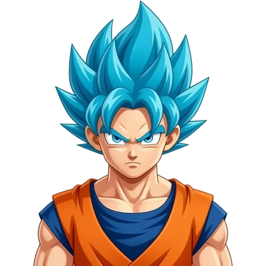 cheerful anime fighter with wild hair, orange and blue outfit, inspired by Goku emoji emoji