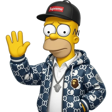 sad bart simpson with hypebeast clothe like supreme bape gucci off white stand up and saying good bye to the screen emoji