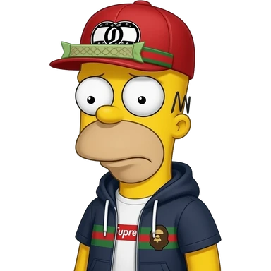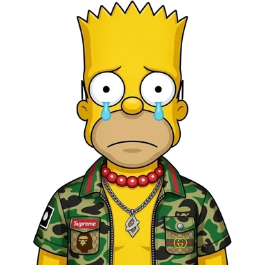 sad bart simpson with hypebeast clothe like supreme bape gucci off white emoji