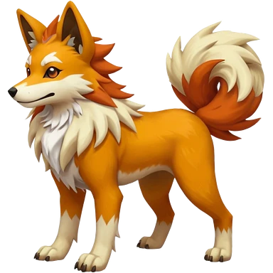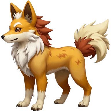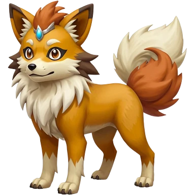Golden Sun-Glow Sand-Dusted Warm Desert-Shaded Canid Lycanroc-Arcanine-fakemon hybrid creature (full body) emoji