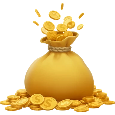 gold money bag overflowing with coins, 3D emoji style emoji