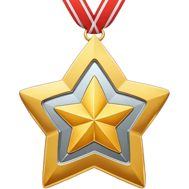 golden medal in star shape, golden, Silver center emoji