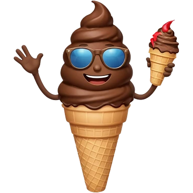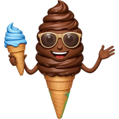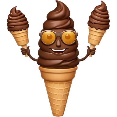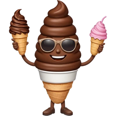 A chocolate icecream, with legs, arms, and a face. It can be seen wearing sunglasses emoji