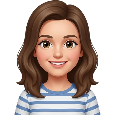 Make a girl with Anna in a crop top that is blue in a blue outfit with real long curly brown hair with brown eyes emoji