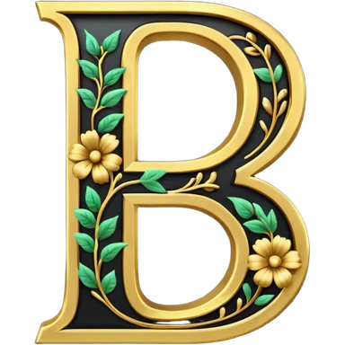 Shiny nlack letter B outlined with hold and a gold flowervine around the left side emoji