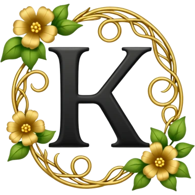 Shint Black letters K outlined with gold and a gold flowervine around the left side emoji
