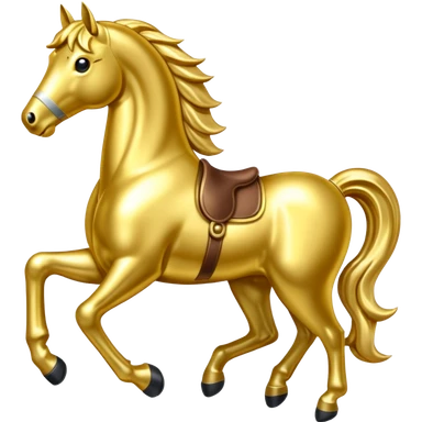 Hermès-style horse jumping with orange and gold harness, luxury, cute emoji style emoji