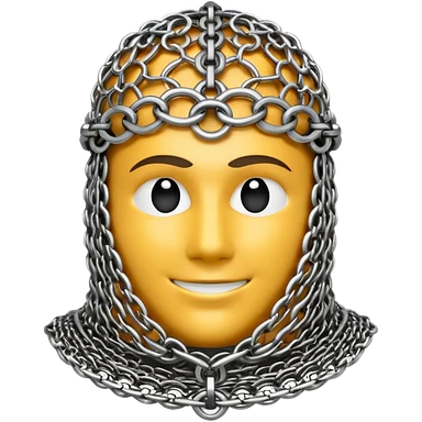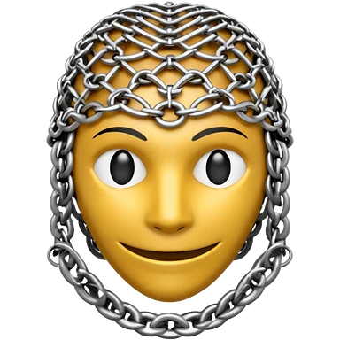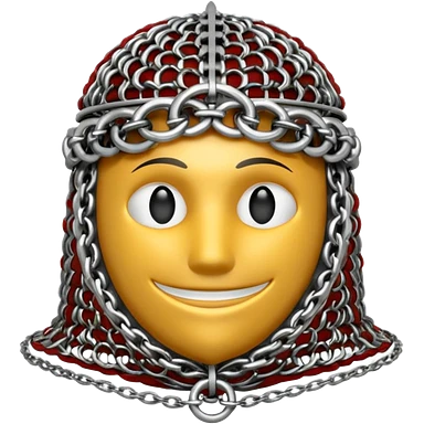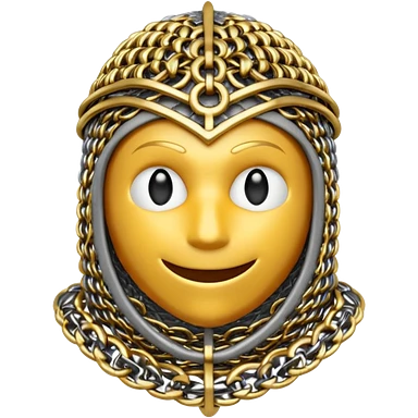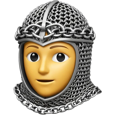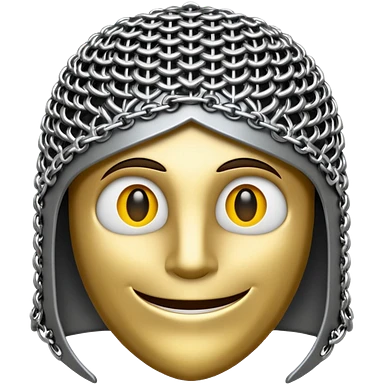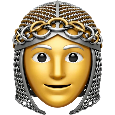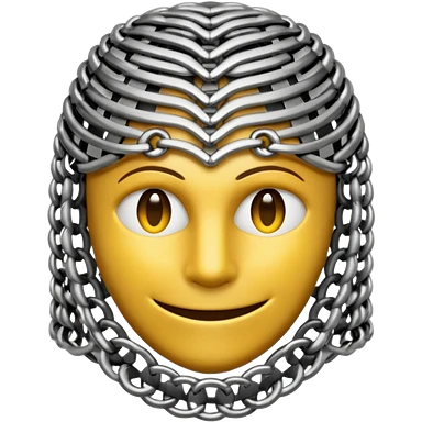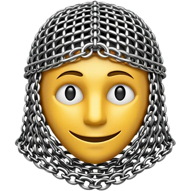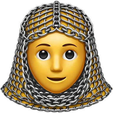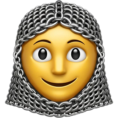 3D render of Medieval Coif, made of interlocking chainmail metal rings, wire mesh texture, visible holes and negative space, metallic silver and grey, high contrast shadows, Apple emoji style, isolated on white background --v 6.0 emoji