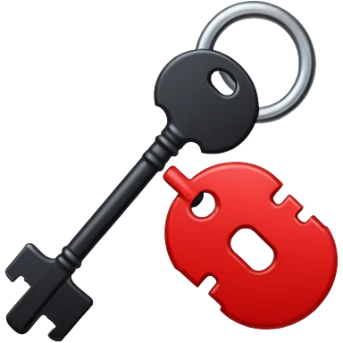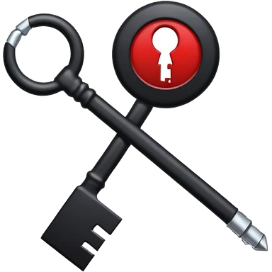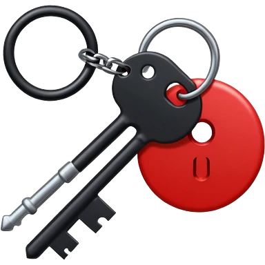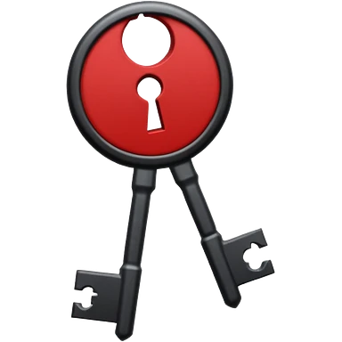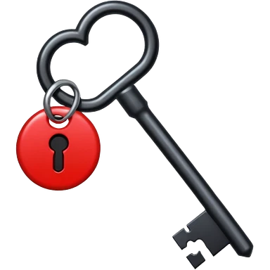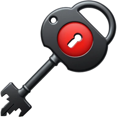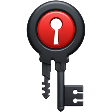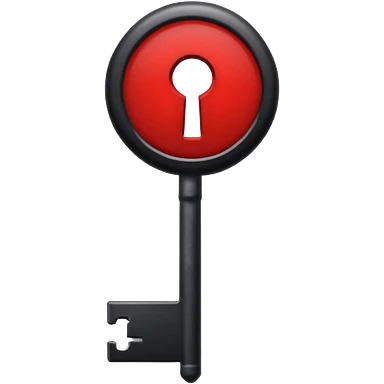iOS sticker, dark key, black metal, red hole, minimal emoji