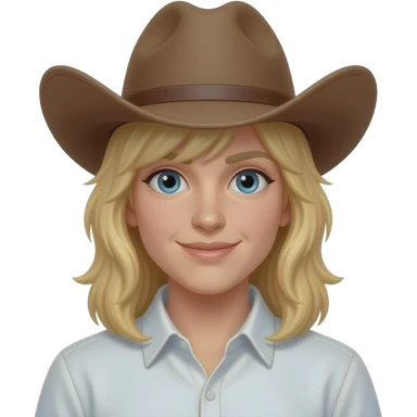 A character wearing a cowboy hat, blonde hair, white button-up shirt. emoji