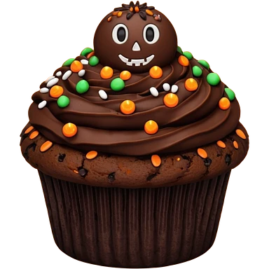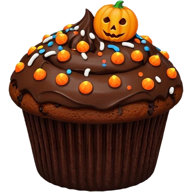 chocolate muffin with halloween decoration on top emoji