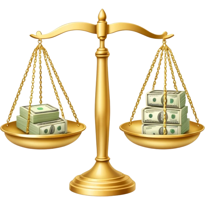 A balanced scale with dollar bills on the left side and three stars on the right side emoji