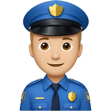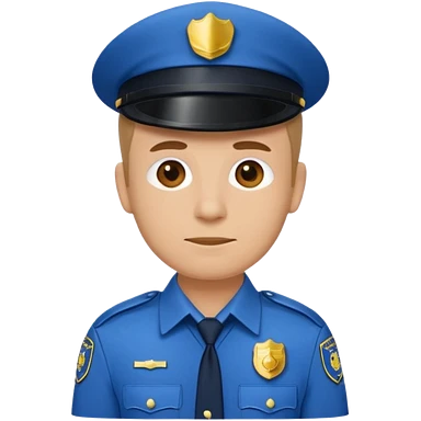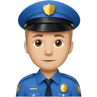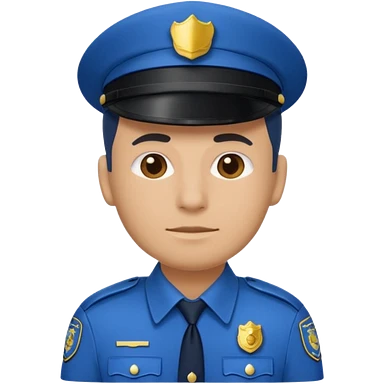 policeman emoji, blue uniform collar and badge visible, head and shoulders only, no cap/hat/headwear, flat emoji style, centered, bold outline, minimal detail, plain background emoji