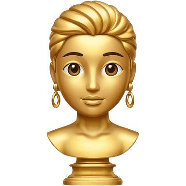Gold statue of bodybuilder man, stubble beard, low fade haircut, shirtless wear golden brief box underpants emoji