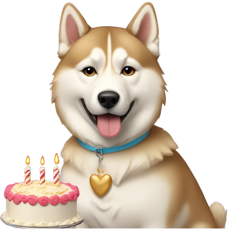 Golden beige husky with a hat and birthday cake emoji | AI Emoji Generator