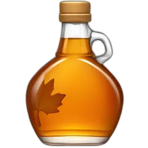 small maple syrup jug, glass, filled with golden-brown syrup, rounded with handle, gold or dark cap, syrup visible, glossy, maple leaf, 3D-rendered, minimal, no faces, transparent background emoji