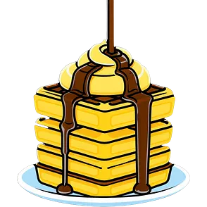 Golden crispy waffle with maple syrup and a square of butter on top emoji | AI Emoji Generator