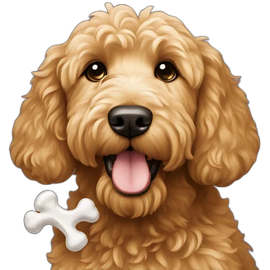 A Christmas-themed golden retriever holding a bone with a bow emoji