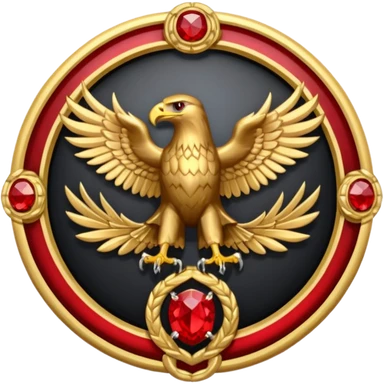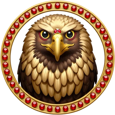 Golden double headed eagle with wings crest / brosch in a circle with red gems and no background emoji | AI Emoji Generator