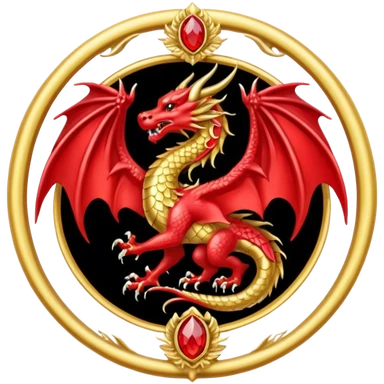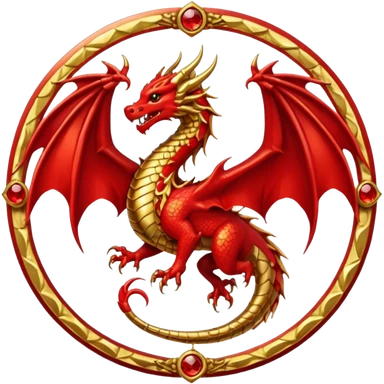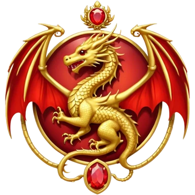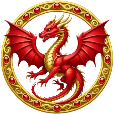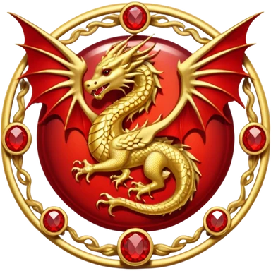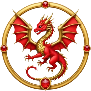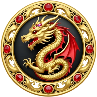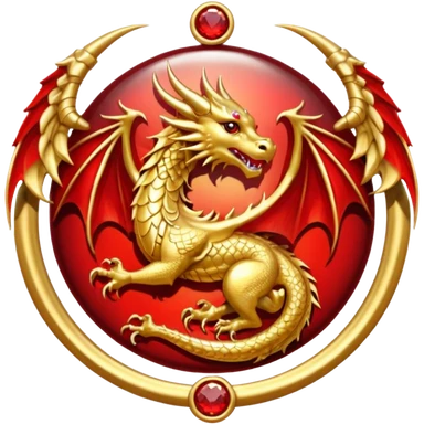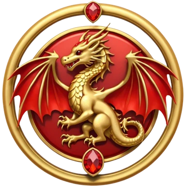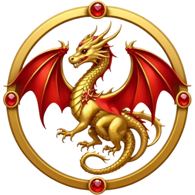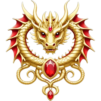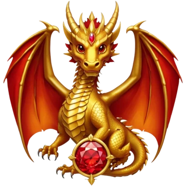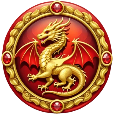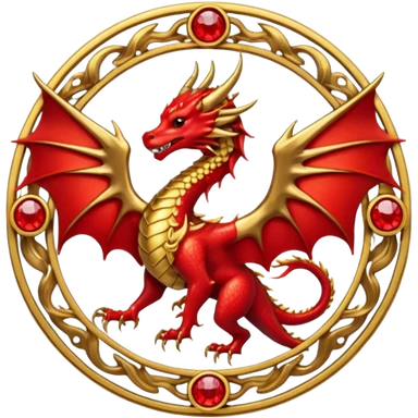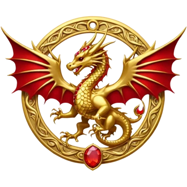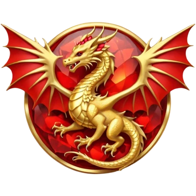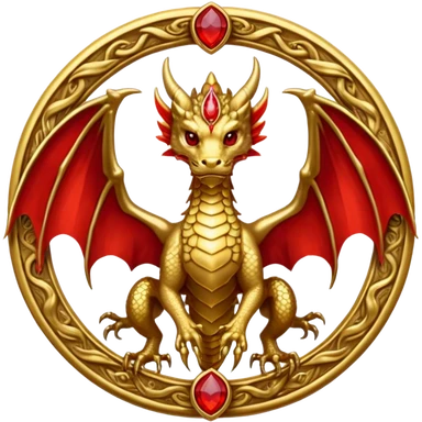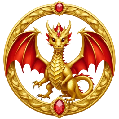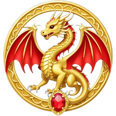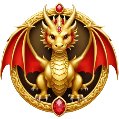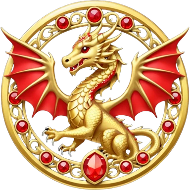 Golden Dragon with golden wings golden crest/brosch in a golden circle with red gems emoji