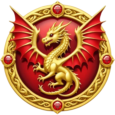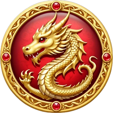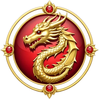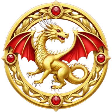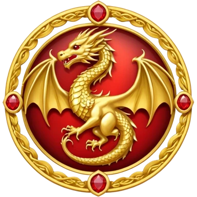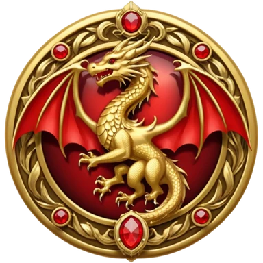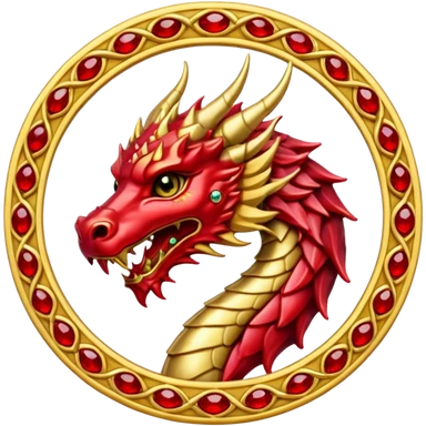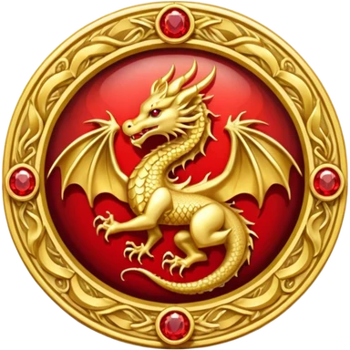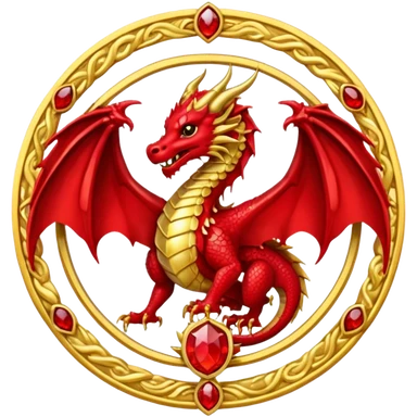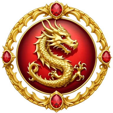 Golden dragon crest / brosch in a circle with red gems and no background emoji