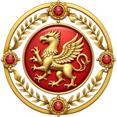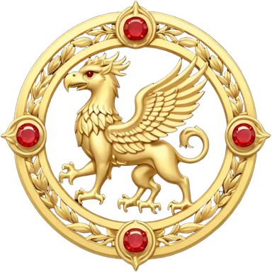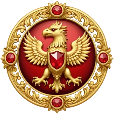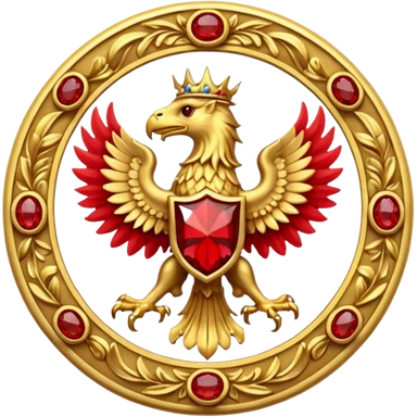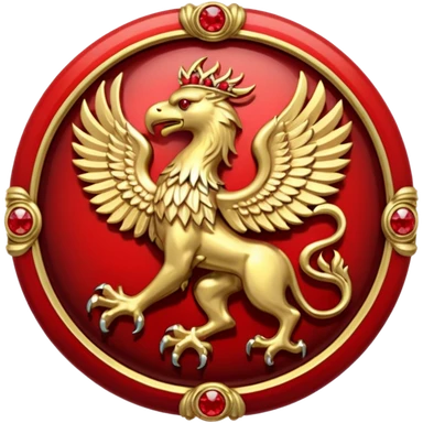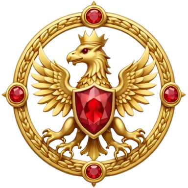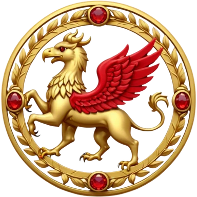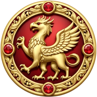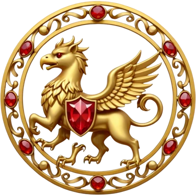 Golden griffin crest / brosch in a circle with red gems and no background emoji