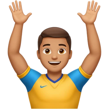 footballer in red-white t-shirt, in his hand golden trophy emoji