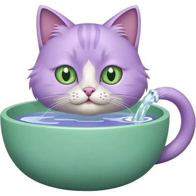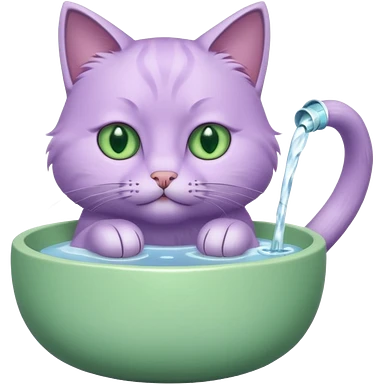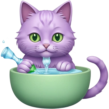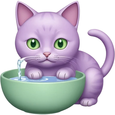 A lilac cat drinks water from a bowl emoji