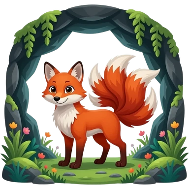 red nine tailed fox in a lush grotto emoji