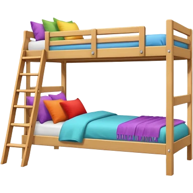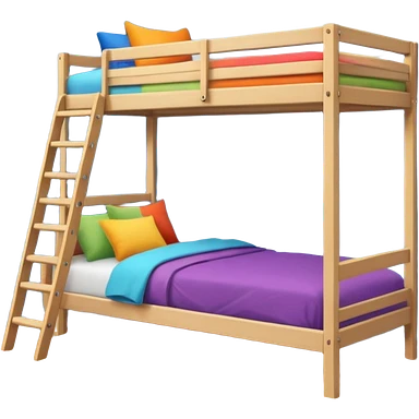 "Cozy bunk bed in a bright bedroom, wooden frame, colorful bedding, small ladder, soft natural light, realistic and detailed." emoji