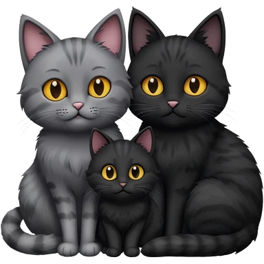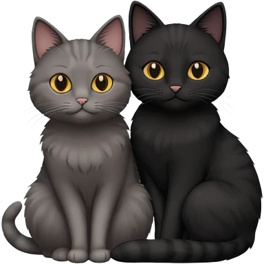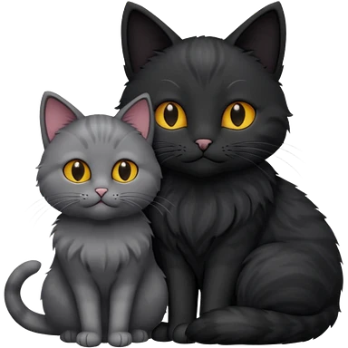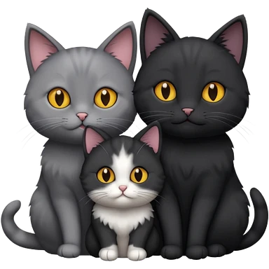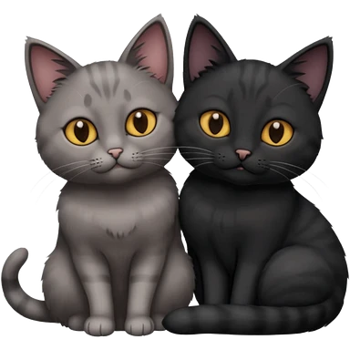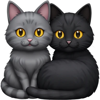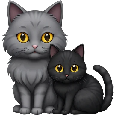 large grey and white cat cuddling a colourful light patched calico + white tabby cat emoji